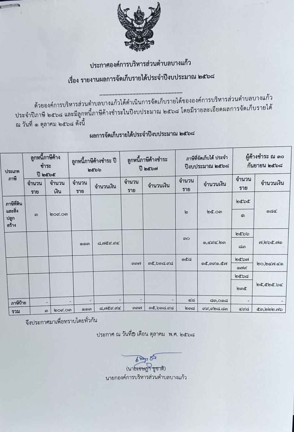 สรุปรายงานผลการจัดเก็บภาษีประจำปีงบประมาณ พ.ศ. 2568